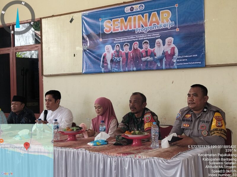 BANTAENG, Teropong Barat.com, – Babinsa Desa Pajukukang, Koramil 1410-03/Tompobulu, Kodim 1410/Bantaeng, Sertu Syahrir menghadiri kegiatan seminar program kerja mahasiswa KKN dari Universitas Muhammadiyah Bulukumba yang dilaksanakan di Desa Pajukukang, Kecamatan Pa’jukukang, Kabupaten Bantaeng. Selasa (17/02/2026)