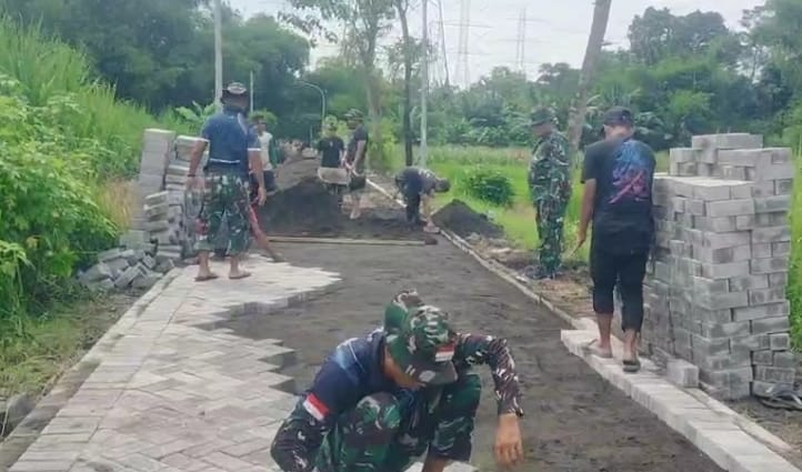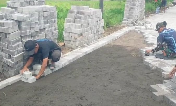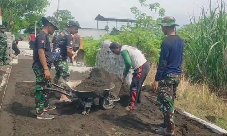 Kegiatan pembangunan tersebut dikerjakan secara gotong royong oleh anggota Satgas TMMD bersama masyarakat setempat. Pemasangan paving jalan ini bertujuan meningkatkan akses transportasi warga sekaligus mendukung kelancaran aktivitas ekonomi dan mobilitas sehari-hari masyarakat desa.