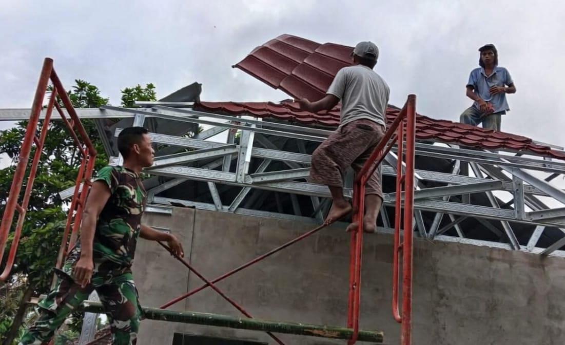 Semangat TMMD, Pemasangan Atap RTLH Bu Hanina Mulai Dikerjakan