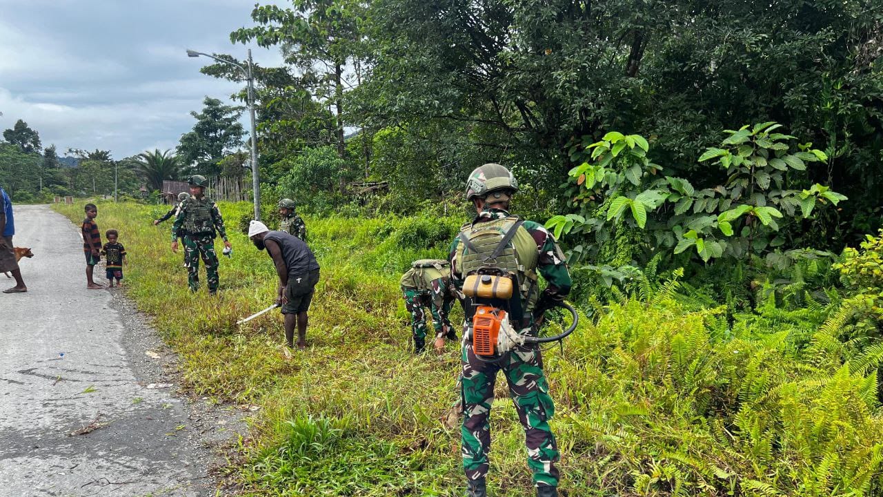 Benawa,// Terpongbarat.com Dalam rangka mempererat kemanunggalan TNI dengan rakyat, Satgas Pamtas Kewilayahan Yonif 521/DY melaksanakan kegiatan karya bakti bersama masyarakat di Distrik Benawa, Kabupaten Yalimo, Provinsi Papua Pegunungan. (19/2/2026). Komandan Satgas Yonif 521/DY Letkol Inf Rahadyan Surya Murdata,S.E,M.I.P, Kegiatan ini menjadi wujud nyata kepedulian TNI terhadap kondisi lingkungan dan kesejahteraan masyarakat di wilayah penugasan. Personel Satgas bersama warga bergotong royong membersihkan lingkungan sekitar pemukiman, fasilitas umum, serta membantu perbaikan sarana yang dibutuhkan masyarakat.Kebersamaan yang terjalin dalam kegiatan tersebut mencerminkan semangat persatuan dan solidaritas antara prajurit TNI dan masyarakat. Dengan penuh semangat dan kekompakan, karya bakti ini tidak hanya menciptakan lingkungan yang bersih dan sehat, tetapi juga memperkuat hubungan emosional antara TNI dan warga setempat.Masyarakat Distrik Benawa menyambut baik kegiatan ini dan menyampaikan apresiasi atas kepedulian serta kehadiran Satgas Yonif 521/DY yang senantiasa hadir membantu kesulitan rakyat di sekelilingnya. Robet Paluke (35Th) salah satu Masyarakat Kampung Benawa menyambut baik kegiatan tersebut dan mengapresiasi kehadiran personel Pos Benawa yang selalu aktif membantu kesulitan warga di wilayah binaannya, “ Terima Kasih bapa TNI telah membantu membersihkan Jalan kampung Benawa semoga TNI tetap jaya dan Tuhan memberkati” Ujar Robet.Melalui kegiatan karya bakti ini, diharapkan sinergi dan kemanunggalan antara TNI dan rakyat akan terus terjaga demi terciptanya keamanan, kenyamanan, serta kemajuan wilayah di Kabupaten Yalimo, Papua Pegunungan. Prajurit Macan Kumbang Berhasil