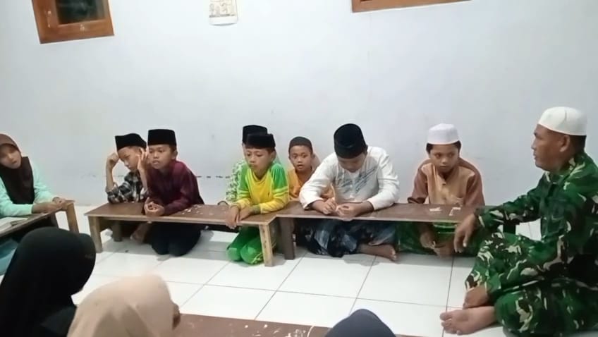 Bimbingan mengaji diberikan langsung oleh Serka Suin dari Korem 083/Bdj kepada para santri dan generasi muda. Pembinaan keagamaan ini menjadi bagian dari sasaran nonfisik TMMD yang bertujuan tidak hanya membangun infrastruktur desa, tetapi juga memperkuat mental dan spiritual masyarakat. Melalui kegiatan tersebut, para peserta diajak memperdalam kemampuan membaca Al-Qur’an sekaligus memahami nilai-nilai moral dan keagamaan dalam kehidupan sehari-hari.