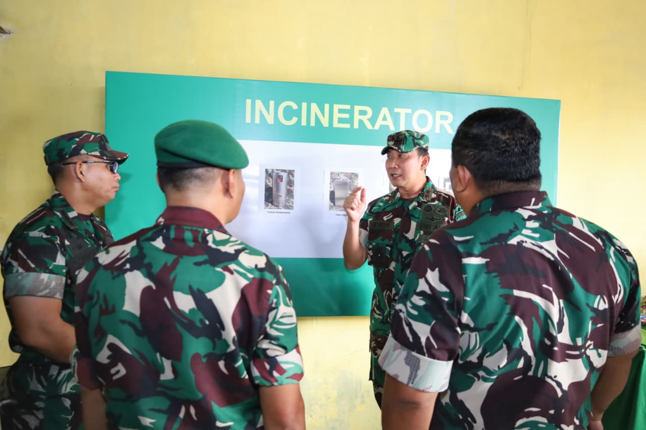 Sementara itu, incinerator rumah tangga dibuat dengan desain lebih sederhana dan aman untuk lingkungan permukiman. Alat ini menggunakan drum logam dengan sistem sirkulasi udara, rak pembakaran, serta saluran asap yang diarahkan menjauhi bangunan, sehingga cocok digunakan di area terbuka dengan pengawasan. Kapendam I/BB, Kolonel Inf Asrul Kurniawan Harahap, S.E., M.Tr.(Han)., menjelaskan bahwa pembuatan alat incinerator ini merupakan bentuk inovasi satuan dalam mendukung pengelolaan limbah yang lebih efektif, praktis, dan ramah lingkungan. “Diharapkan alat ini nantinya dapat dimanfaatkan secara optimal untuk membantu satuan maupun masyarakat dalam penanganan limbah secara aman dan terkontrol,” ujarnya. Dalam kegiatan tersebut, Pangdam I/BB didampingi Kasdam I/BB, Asops Kasdam I/BB, Aster Kasdam I/BB, dan Kapaldam I/BB.