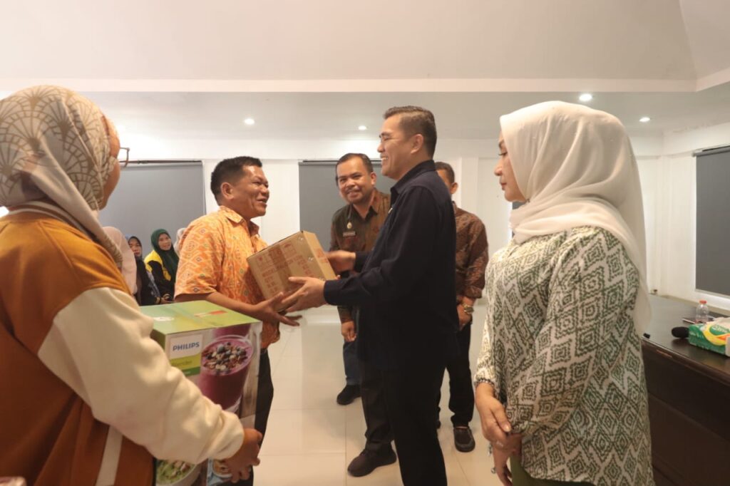 Teropong Barat co/Para pelaku usaha UMKM se-Kabupaten Pakpak Bharat hari ini menerima bantuan peralatan UMKM dari Dinas Koperasi dan UMKM Sumatera Utara yang diserahkan oleh Dr. Naslindo Sirait di aula Rumah Candu, Kompleks Rumah Jabatan Bupati Pakpak Bharat, Salak (04/01/2024). Bantuan berupa steleng makanan, kompor gas, blender, termos, ricecooker, mesin spinner, mesin las listrik, dan berbagai peralatan lainnya diserahkan kepada 37 orang pelaku UMKM se-Kabupaten Pakpak Bharat guna membantu mendorong peningkatan ekonomi sektor UMKM.