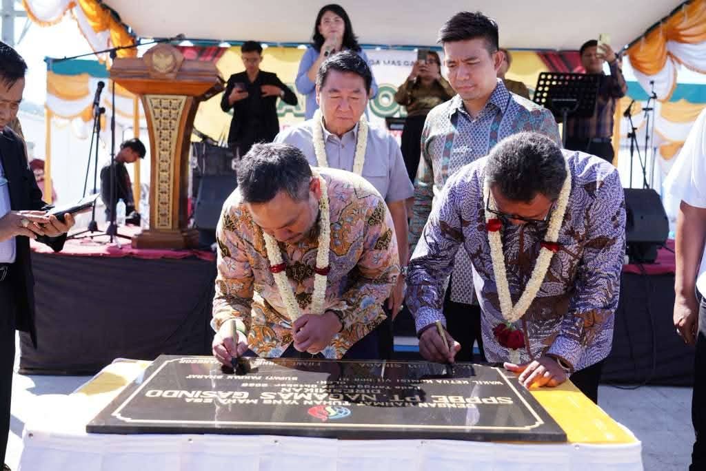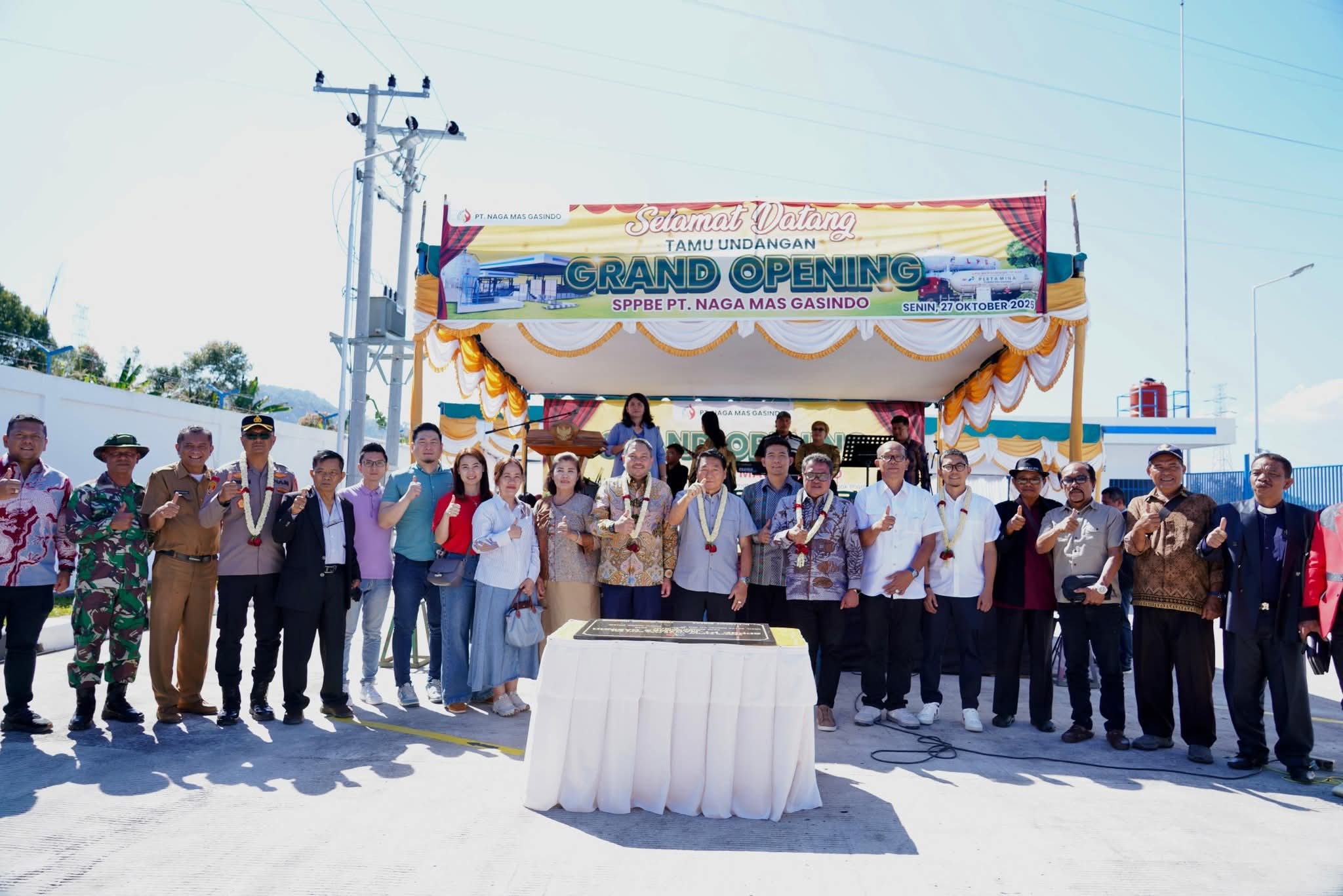 Acara peresmian berlangsung meriah. Bupati Franc bersama **Wakil Ketua Komisi VII DPR RI, Lamhot Sinaga**, serta **Owner PT Naga Mas Gasindo, Marcos Sinaga**, dan **Direktur Herianto Sinaga**, menandatangani prasasti dan menggunting pita tanda dimulainya operasional SPPBE tersebut.
