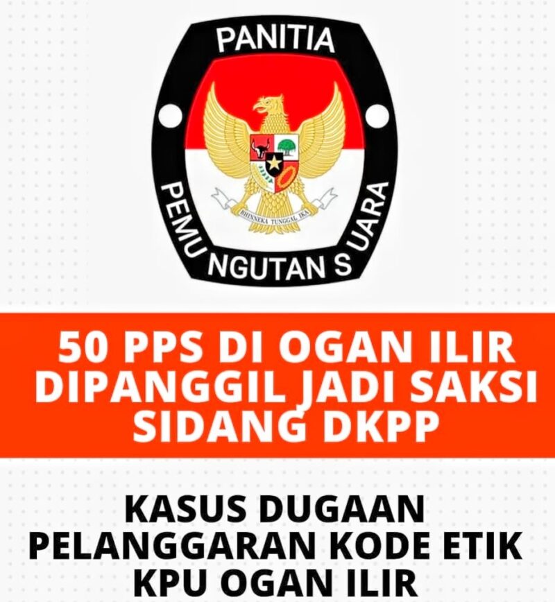 OGAN ILIR, — Sebanyak 50 anggota Panitia Pemungutan Suara (PPS) dari 723 PPS se- Kabupaten Ogan Ilir dipanggil oleh Dewan Kehormatan Penyelenggara Pemilu (DKPP) untuk memberikan kesaksian dalam sidang dugaan pelanggaran etik yang melibatkan Ketua dan anggota Komisi Pemilihan Umum (KPU) Ogan Ilir.