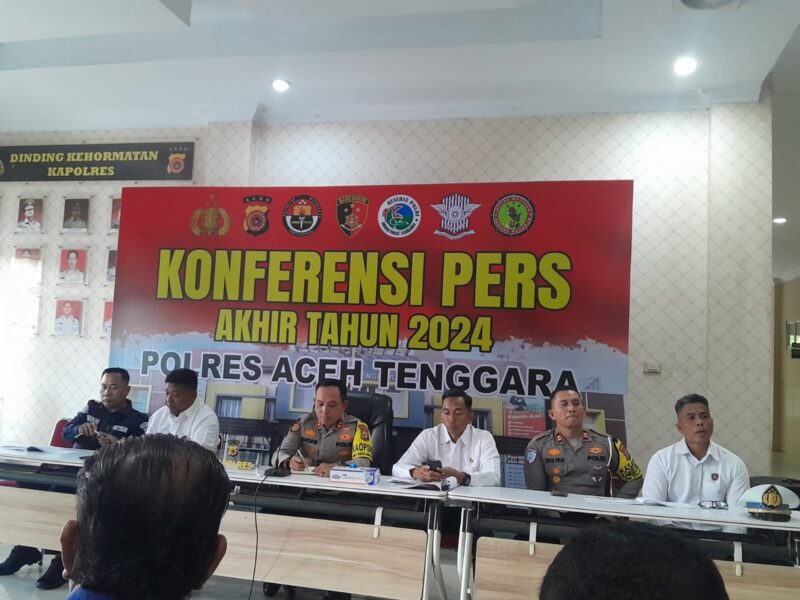 Kutacane, teropong Barat Com,  Akhirnya tahun 2024, Polres Aceh Tenggara menggelar Konferensi Pers Akhir Tahun, Senin (30/12) 2024 sekira pukul 11.00 Wib, di Lobi Endra Darmalaksana Polres Aceh Tenggara.