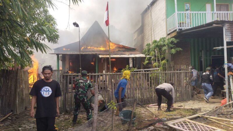 Aksi Gerak Cepat Babinsa Koramil 1426-01/Polut, Padamkan Api Yang Membakar Rumah Warga