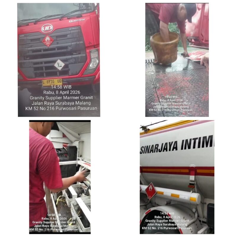 Purwosari // Kembali terjadi aksi nekat seorang sopir pengangkut BBM bersubsidi merah putih dengan Nopol L 8710 UQ milik PT. Sinarjaya Intimperkasa yang terciduk “kencing” dipinggir jalan. “Kencing” adalah istilah untuk penggelapan BBM oleh sopir tangki dengan cara mengeluarkan cairan sebagian muatan untuk dijual kembali secara ilegal, Rabu (8/4/2026).
