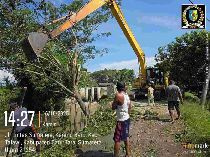 BATU BARA, 16 Oktober 2025 – Anggota DPRD Kabupaten Batu Bara, Rusli dari Komisi 1 Fraksi PDI Perjuangan, menunjukkan respons cepat terhadap kebutuhan masyarakat dengan menurunkan alat berat untuk menormalisasi Sungai Irigasi dan memperbaiki bendung sungai yang longsor akibat curah hujan tinggi. Kegiatan ini dilaksanakan pada hari ini, 16 Oktober 2025, sekitar pukul 10.30 WIB.