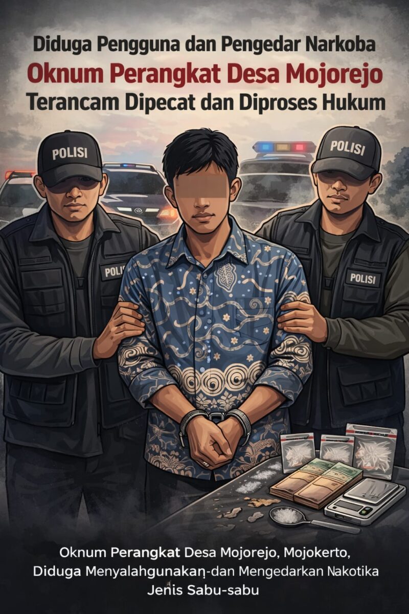 Desa MojoRejo // Teropongbarat.com Diduga Jadi Sarang Pelahgunaan dan Peredaran Narkotika Jenis sabu Oleh Oknum Perangkat Desa, LPKRI DPC GRESIK Mempertanyakan SOP Sangsinya Mojokerto – Warga Desa Mojorejo, Kecamatan Jetis, Kabupaten Mojokerto, dibuat resah oleh dugaan keterlibatan dua oknum perangkat desa berinisial G dan K yang dinyatakan positif sebagai pengguna narkoba. Bahkan, salah satu di antaranya, yakni G, diduga tidak hanya sebagai pengguna, melainkan juga terlibat dalam peredaran narkoba ( Pengedar)