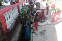 TAKALAR — teropongbarat.com|Personel Koramil 1426-01/Polut Kodim 1426/Takalar motivasi warga dalam menjaga kebersihan lingkungan dengan kegiatan kerja bakti membersihkan saluran air dan bahu jalan yang…
