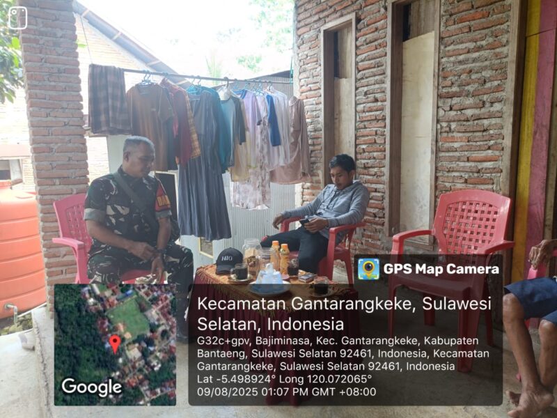 BANTAENG Teropong Barat.com, – Sebagai upaya menjaga stabilitas dan kerukunan di wilayah binaan, Babinsa Desa Bajiminasa, Koramil 03/Tompobulu Kodim 1410/Bantaeng, Sertu Ahmad Ramli, melaksanakan kegiatan Komunikasi Sosial (Komsos) bersama warga. Kegiatan ini berlangsung di Dusun Moti, Desa Bajiminasa, Kecamatan Gantarangkeke, Kabupaten Bantaeng. Sabtu (9/8/2025)