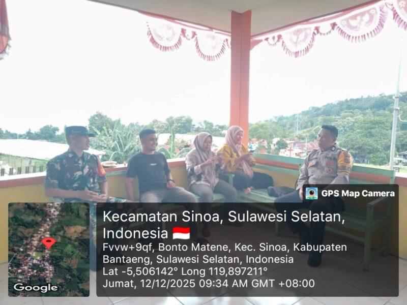 BANTAENG, Teropong Barat.com, — Babinsa Desa Bonto Mate’ne, Koramil 01/Bissappu, Kodim 1410/Bantaeng, Serma Muhammad Ridwan, melaksanakan kegiatan Komunikasi Sosial (Komsos) bersama warga binaan. Kegiatan ini berlangsung di Aula Kantor Desa Bonto Mate’ne, Kecamatan Sinoa, Kabupaten Bantaeng. Jumat (12/12/2025)