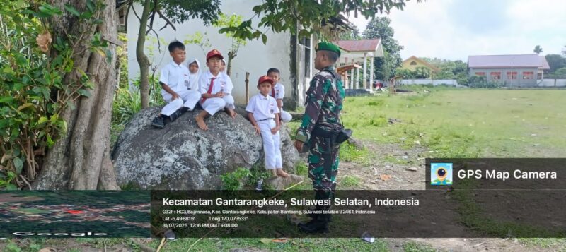 BANTAENG Teropong Barat.com, – Dalam upaya membangun kedekatan dan memberikan semangat kepada generasi muda, Babinsa Desa Bajiminasa Koramil 1410-03/Tompobulu Kodim 1410/Bantaeng, Sertu Ahmad Ramli, melaksanakan kegiatan komunikasi dengan siswa-siswi SD Inpres Moti yang berlokasi di Dusun Moti, Desa Bajiminasa, Kecamatan Gantarangkeke, Kabupaten Bantaeng, Kamis (31/07/2025).