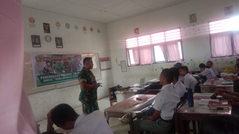 Sidikalang, Teropongbarat.com – Babinsa Koramil 02/Sidikalang, Kodim 0206/Dairi, menggelar sosialisasi terkait program Rekrutmen TNI AD Secata PK Gelombang I Tahun 2025 kepada siswa-siswi kelas XII MIPA di SMA Negeri 2 Sidikalang, Jumat (24/01). Acara ini bertujuan memberikan informasi lengkap dan akurat tentang rekrutmen yang dilaksanakan secara gratis dan transparan.