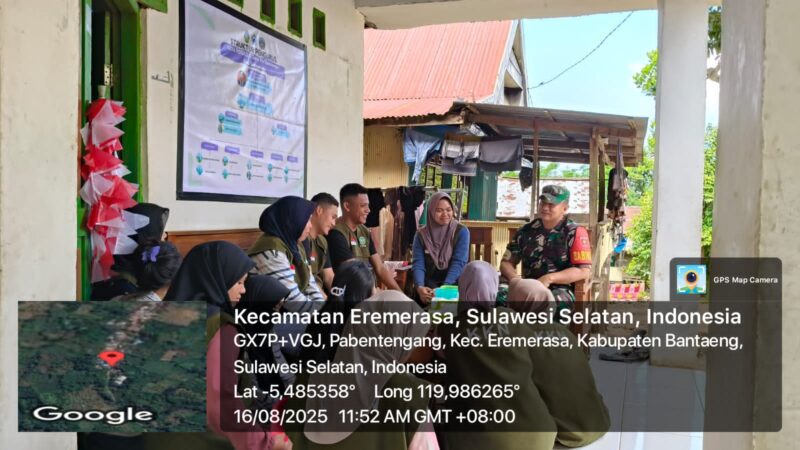 BANTAENG Teropong Barat.com, – Babinsa Desa Pabentengan, Sertu Albar, dari Koramil 1410-02/Eremerasa, melaksanakan Komunikasi Sosial (Komsos) dengan mahasiswa Kuliah Kerja Nyata (KKN) Tematik Angkatan 18 dari Universitas Megarezky Makassar, Bertempat di Desa Pabentengan, Kecamatan Eremerasa, Kabupaten Bantaeng. Sabtu (16/8/2025)