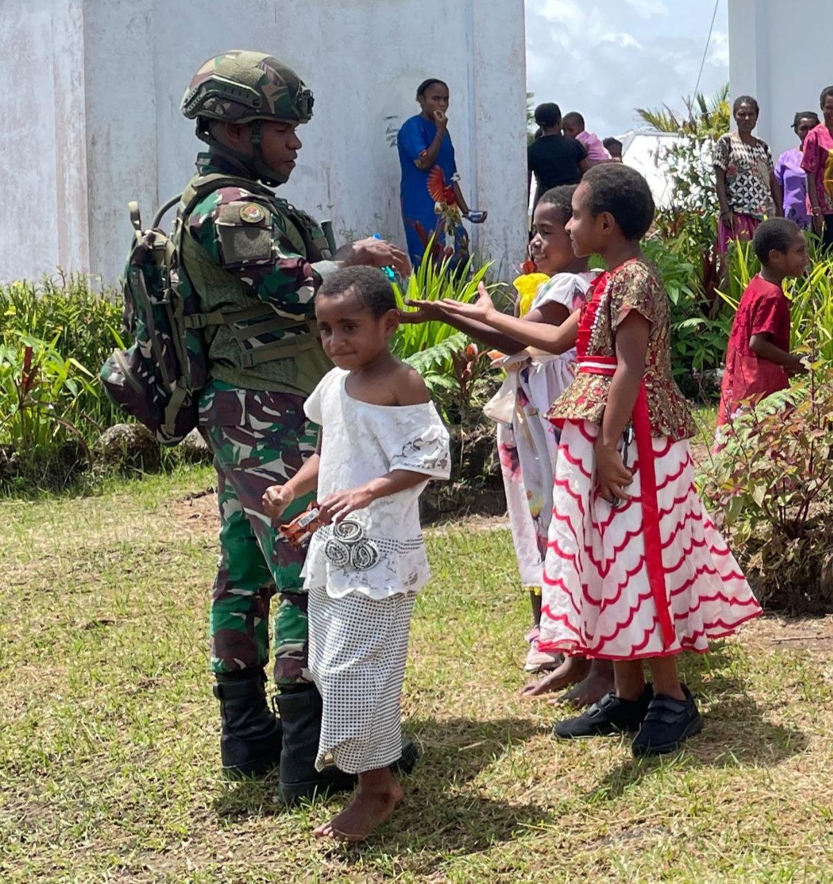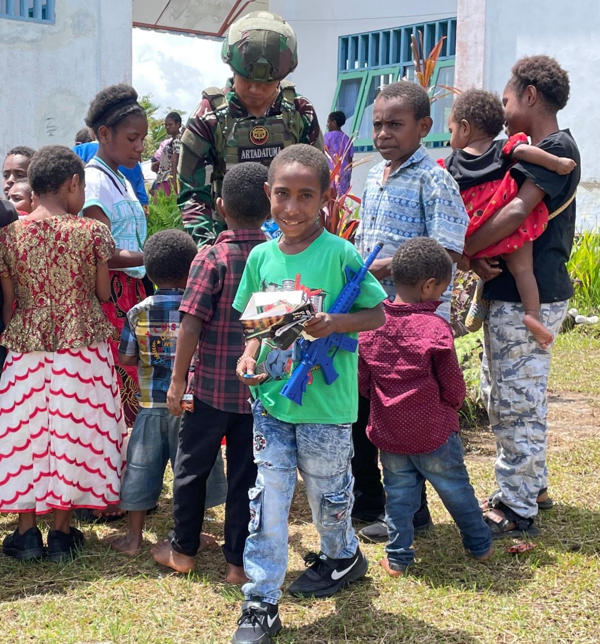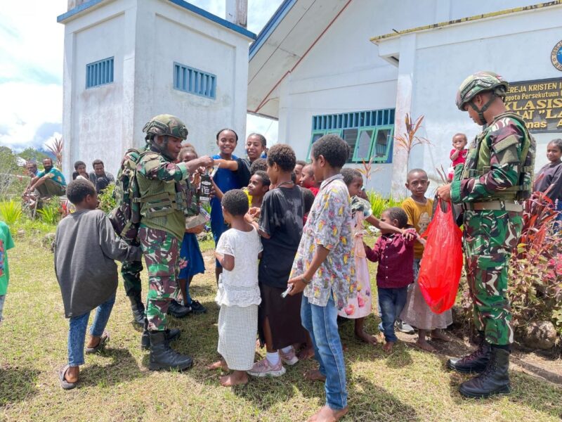 Apalapsili, // Teropongbaray.com Wujud kepedulian dan kedekatan dengan masyarakat terus ditunjukkan oleh Satgas Yonif 521/DY dalam pelaksanaan tugasnya di Papua Pegunungan. Melalui kegiatan berbagi kebahagiaan, personel Satgas hadir di tengah-tengah masyarakat Distrik Apalapsili, Kabupaten Yalimo, (6/4/2026), guna mempererat tali silaturahmi sekaligus membawa keceriaan bagi anak-anak setempat.