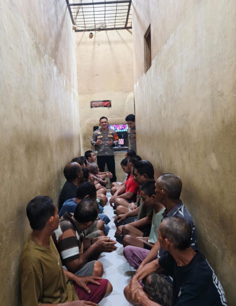 Selanjutnya IPDA Syamsul berdialog dan berbincang langsung dengan para tahanan termasuk menanyakan kondisi kesehatan para tahanan.