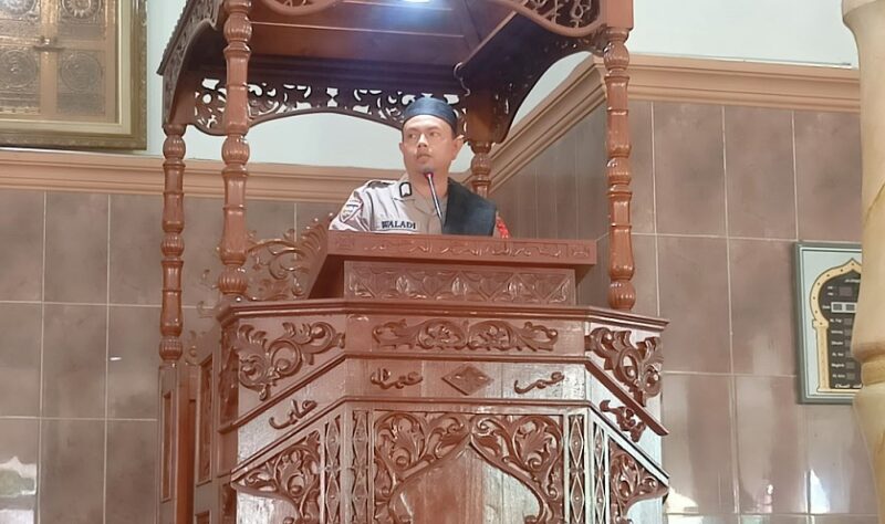 Blangkejeren – BRIPKA Marhaban Waladi, anggota Satbinmas Polres Gayo Lues, bertindak sebagai khatib dalam pelaksanaan shalat Jumat di Masjid Agung Ash-Shalihin, Kota Blangkejeren, Kecamatan Blangkejeren. Dalam khutbahnya, ia menyampaikan sosialisasi terkait pentingnya menjaga keamanan dan ketertiban masyarakat (Kamtibmas) menjelang Pilkada serentak 2024, Jum’at, 11 November 2024.