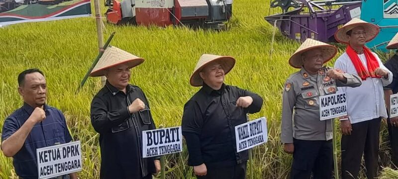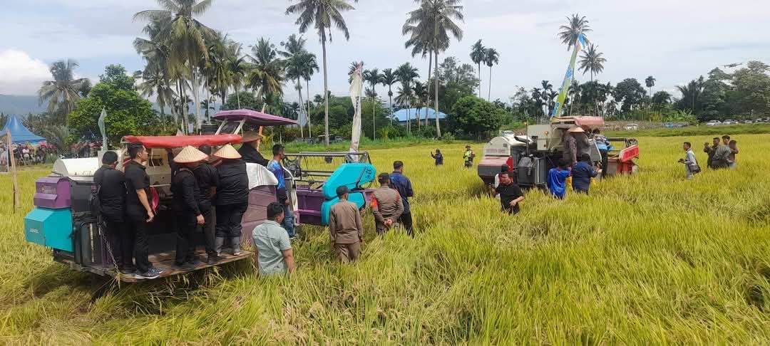Kutacane, teropong Barat Com. | Bupati Aceh Tenggara beserta Forkopimda, juga para Kepala Dinas, Forkopimda, dan Poktan adakan panen padi raya serentak di Kute Telengat Selian Kecamatan Bukit Tusam, Aceh Tenggara kutacane,Senin (7/4).2025.