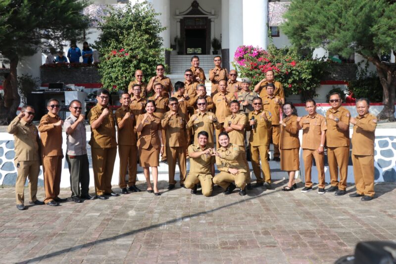 Ket. Foto. Bupati / Wakil Bupati Toba Foto bersama Dengan Pimpinan OPD Pada Apel Gabungan.