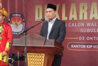 SUBULUSSALAM l Dalam acara rapat paripurna istimewa dalam rangka penyampaian visi, misi dan program pasangan calon Wali Kota dan Wakil Wali Kota Subulussalam pemilihan…