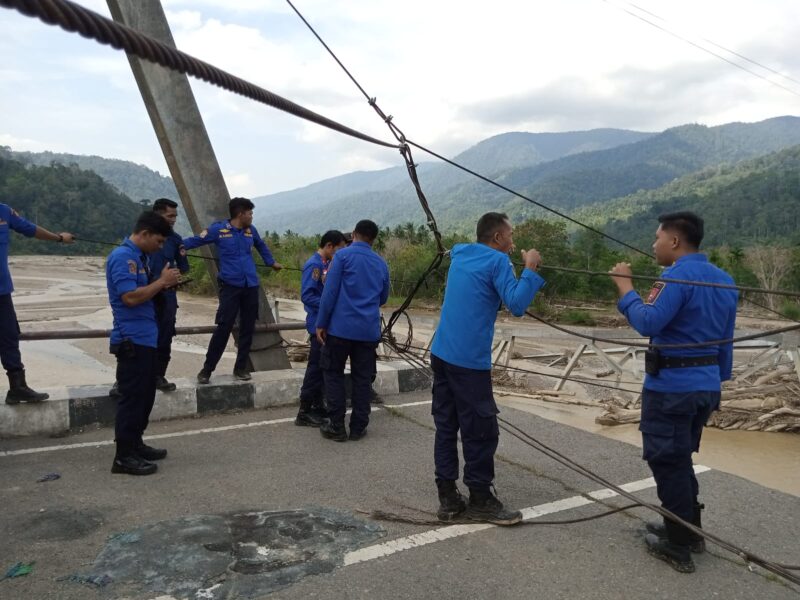 GAYO LUES – Upaya pemulihan akses masyarakat Kecamatan Pining pascabanjir terus dilakukan. Dinas Pemadam Kebakaran Kabupaten Gayo Lues mengerahkan tim lintas sektor untuk membangun jembatan darurat yang sebelumnya hanyut diterjang arus sungai.