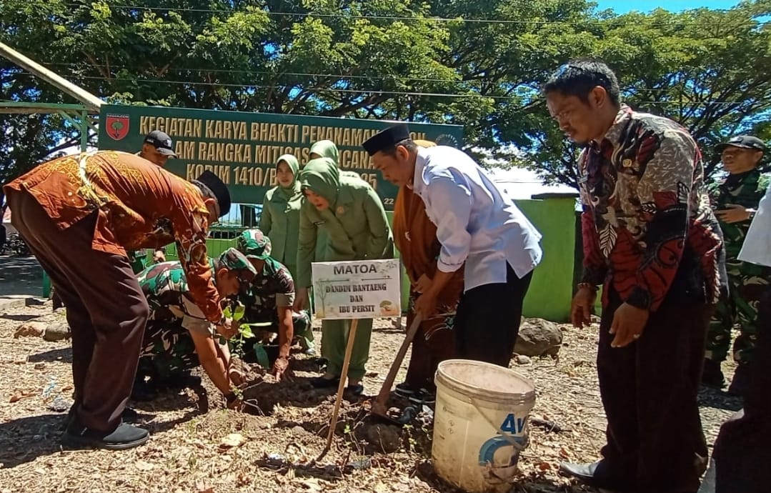 Dalam sambutannya Dandim 1410/Bantaeng Letkol Inf Eka Agus Indarta menyampaikan hari ini kami dari TNI bekerjasama dengan Kemenag Kabupaten Bantaeng terkait kegiatan penanaman pohon, TNI juga mendapat perintah dari Panglima TNI dan pimpinan Angkatan Darat, untuk menanam pohon di tempat atau titik yang lahannya masih kosong khususnya di utamakan lahan yang rawan bencana.