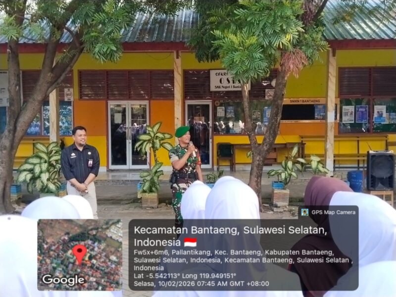 BANTAENG, Teropong Barat.com, — Babinsa Kelurahan Pallantikang, Koramil 1410-02/Eremerasa, Kodim 1410/Bantaeng, Sertu Syamsuddin melaksanakan kegiatan apel pagi bersama siswa SMK Negeri 1 Bantaeng, Yang Dipimpin Lansung Oleh Danramil 1410-02/Eremerasa. Kegiatan tersebut berlangsung di lapangan upacara SMK Negeri 1 Bantaeng yang berlokasi di Jalan Elang, Kelurahan Pallantikang, Kecamatan Bantaeng, Kabupaten Bantaeng. Selasa (10/02/2026)