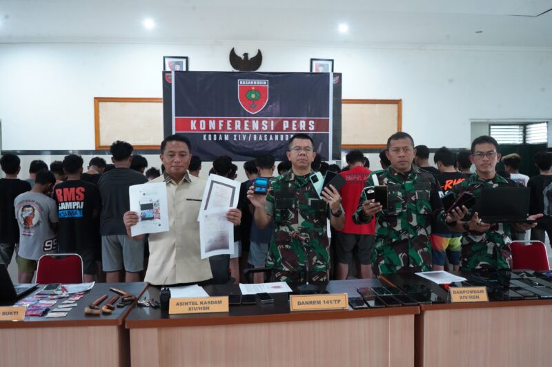 Makassar, Sulsel — teropongbarat.com|Komandan Korem 141/TP Brigjen TNI Andre Clift Rumbayan, S.Sos., M.M., hadiri Konferensi Pers terkait hasil penangkapan sindikat penipuan online (Passobis) dengan modus investasi dan penjualan fiktif. Pada tanggal 25 pukul 10.45 WITA, di Aula Deninteldam XIV/Hsn Jl. Urip Sumoharjo Kota Makassar, Kodam XIV/Hsn.