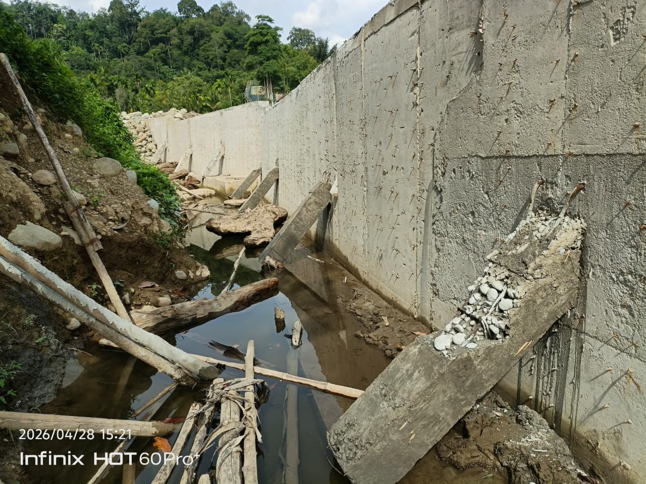 Pada Pantauan menunjukkan sejumlah dinding beton irigasi yang tengah dicor terlihat tidak rapi dan terkesan minim mutu. Bahkan, beredar informasi bahwa sebagian struktur tersebut sebelumnya sempat terdampak banjir hidrometeorologi, akan tetapi hanya ditutup ulang dengan lapisan semen tanpa perbaikan mendasar.