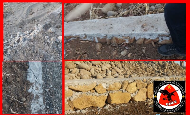 Saat Team Lembaga ELHAN-RI berkunjung dilokasi terlihat banyak pekerjaan yang di duga campuran tidak sesuai perencanaan seperti banyaknya proyek tidak ada galian, kualitas campuran diragukan mengingat sudah banyak roboh maupun retak-retak padahal belum difungsikan, ketinggian pondasi pendek, dan lain-lain,(06/10/2024).