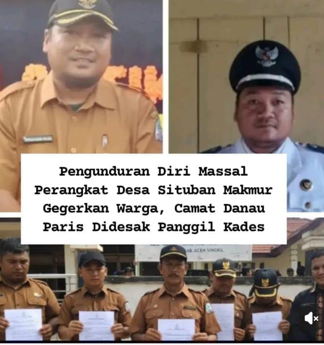 Aceh Singkil, teropongbarat.co. Pengunduran diri sejumlah perangkat Desa Situban Makmur, Kecamatan Danau Paris, Kabupaten Aceh Singkil, secara serentak mengejutkan masyarakat setempat. Peristiwa yang terjadi pada Senin (9/3/2026) itu memicu berbagai tanda tanya di tengah publik.