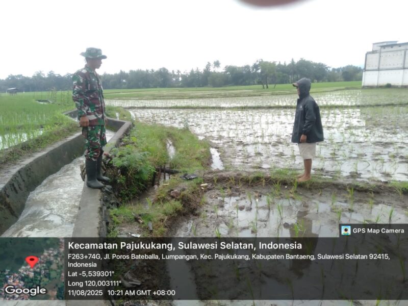 BANTAENG Teropong Barat.com, – Serka Arba, Babinsa Desa Lumpangan dari Koramil 03/Tompobulu Kodim 1410/Bantaeng, hari ini mendampingi Kelompok Tani Lumpangan dalam kegiatan pemantauan tanaman padi. Kegiatan ini dilaksanakan di Dusun Botolempangan, Desa Lumpangan, Kecamatan Pa’jukukang, Kabupaten Bantaeng. Senin (11/8/2025)