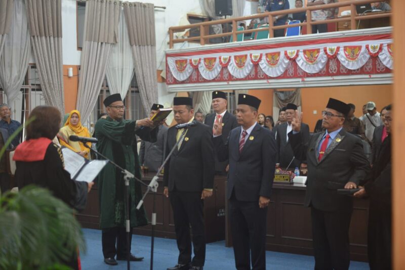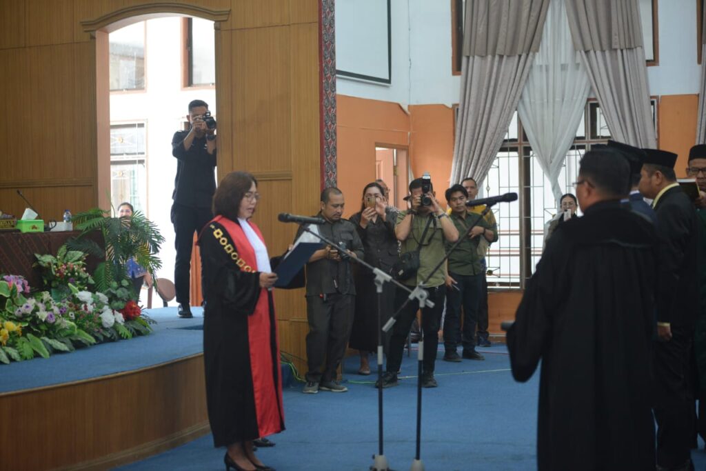 Bersama Wakil Bupati Pakpak Bharat, H Mutsyuhito Solin, Dr, M.Pd dan sejumlah pejabat lainnya, Franc Bernhard Tumanggor menyaksikan langsung pelantikan dan pengambilan sumpah janji bagi tiga Pimpinan DPRD Pakpak Bharat oleh Ketua Pengadilan Negeri Sidikalang, Eva Rina Sihombing, SH, MH.