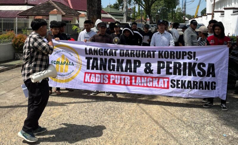 Medan, Teropong Barat.com | Puluhan anggota Gerakan Masyarakat untuk Perubahan Langkat (GEMAPALA) menggelar aksi damai di depan Kantor Kejaksaan Tinggi Sumatera Utara (Kejati Sumut) pada Rabu, (30/7/2025) Mereka mendesak Kejati Sumut mengusut tuntas dugaan kelebihan pembayaran senilai Rp 5,4 miliar di Dinas Pekerjaan Umum dan Tata Ruang (PUTR) Kabupaten Langkat.