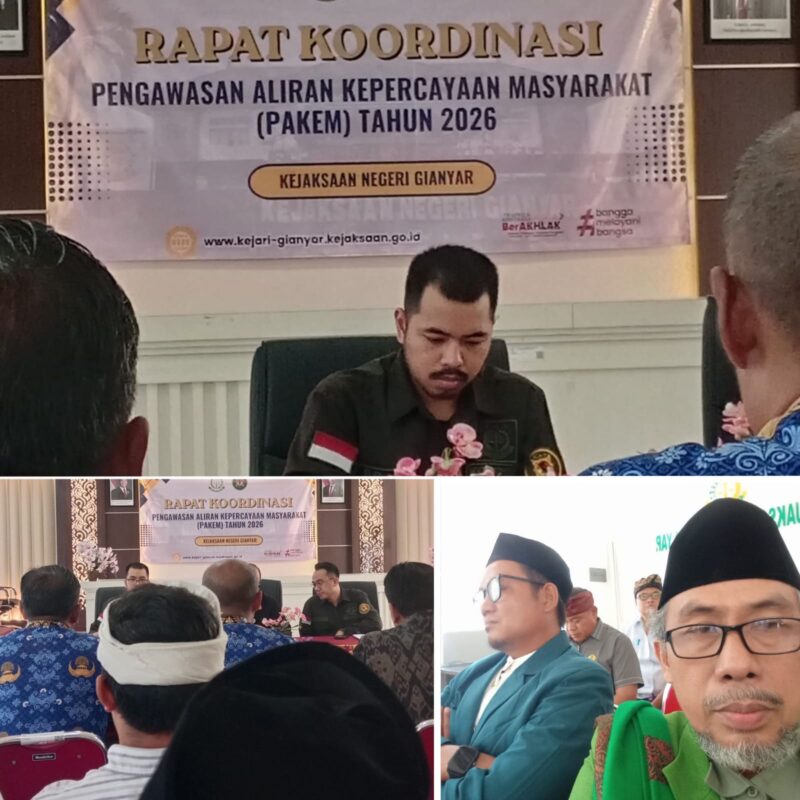 Gianyar, Bali // Teropongbarat.com Komitmen menjaga harmoni di tengah keberagaman kembali ditegaskan berbagai elemen di Kabupaten Gianyar. Dalam Rapat Koordinasi Pengawasan Aliran Kepercayaan Masyarakat (PAKEM) yang digelar di Kantor Kejaksaan Negeri Gianyar, Kamis (16/04/2026), seluruh pihak sepakat memperkuat sinergi demi menjaga stabilitas sosial.Salah satu poin penting yang mencuat dalam forum tersebut adalah penegasan bahwa hingga kini tidak ditemukan adanya aliran kepercayaan yang menyimpang maupun paham radikal dan intoleran di wilayah Gianyar. Kondisi ini menunjukkan bahwa kehidupan masyarakat masih berada dalam situasi yang aman dan terkendali.
