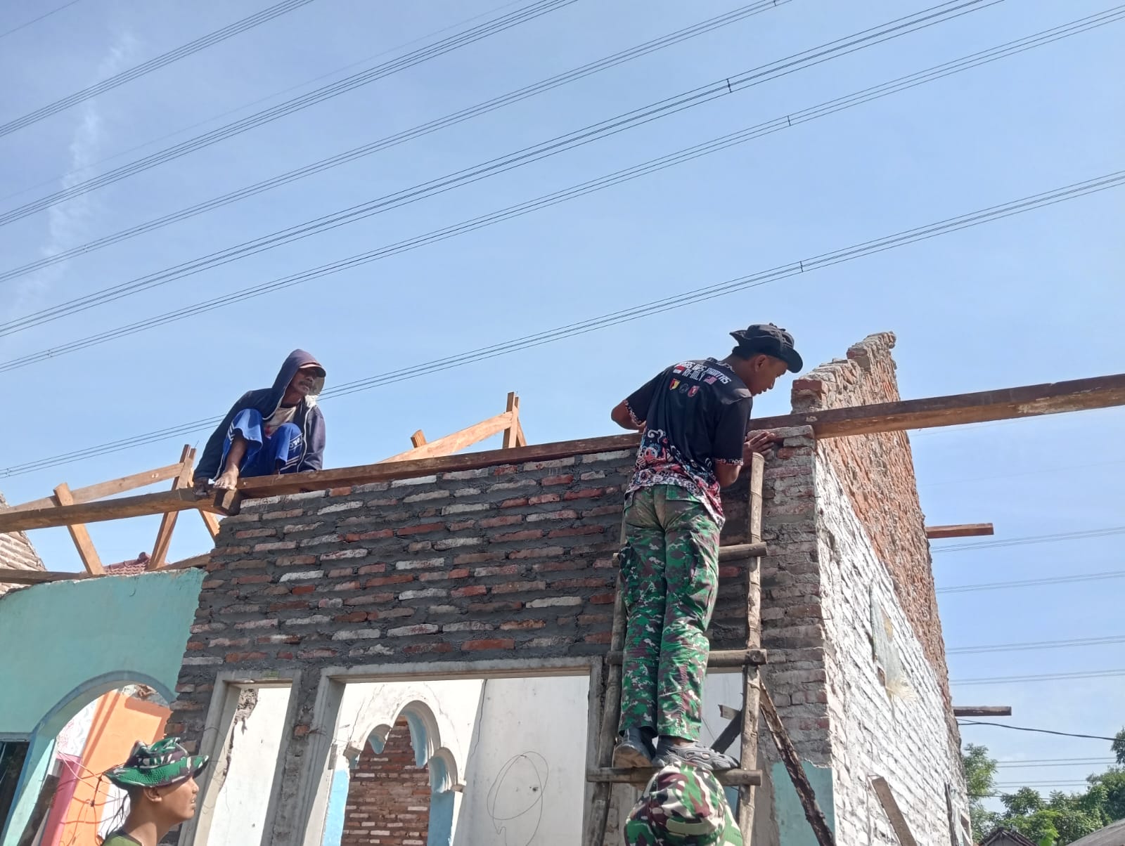 Satgas TNI Manunggal Membangun Desa (TMMD) Ke-127 Kodim 0819/Pasuruan terus menunjukkan komitmennya dalam membantu masyarakat melalui pembangunan Rumah Tidak Layak Huni (RTLH). Salah satu kegiatan yang tengah dikerjakan adalah pemasangan balok kayu rumah milik Bapak Musklis yang berada di Dusun Kili, Desa Wonosari, Kecamatan Gondangwetan, Kabupaten Pasuruan. Sabtu (20/2/2026).Dalam kegiatan tersebut, anggota Satgas TMMD bersama warga tampak bahu-membahu memasang balok kayu sebagai rangka utama bagian atas bangunan. Proses pengerjaan dilakukan secara gotong royong dengan penuh semangat, meskipun di bawah terik matahari, demi mempercepat penyelesaian rumah agar segera dapat ditempati dengan layak.Pratu Prambudi yang tergabung dalam Satgas TMMD Ke-127 menyampaikan bahwa pemasangan balok kayu merupakan tahap penting dalam pembangunan rumah karena menjadi penopang struktur atap. Menurutnya, pengerjaan dilakukan secara teliti agar bangunan kokoh dan aman bagi penghuninya.“Kami berupaya bekerja maksimal agar pembangunan rumah Bapak Musklis segera selesai. Harapannya, rumah ini nantinya bisa memberikan kenyamanan dan meningkatkan kesejahteraan keluarga,” ujar Pratu Prambudi. Program TMMD tidak hanya berfokus pada pembangunan fisik, tetapi juga memperkuat kebersamaan antara TNI dan masyarakat. Kehadiran Satgas TMMD di tengah warga diharapkan mampu memberikan manfaat nyata sekaligus menumbuhkan semangat gotong royong di lingkungan desa. Dengan progres pembangunan yang terus berjalan, masyarakat Dusun Kili menyambut baik bantuan tersebut dan berharap program TMMD dapat membawa perubahan positif bagi desa mereka.