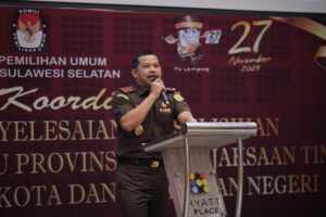 MAKASSAR, Teropong Barat.com, — Kepala Kejaksaan Tinggi Sulawesi Selatan, Agus Salim menghadiri Rapat Koordinasi Pendampingan Penyelesaian Perselisihan Hasil Pemilihan antara KPU Provinsi dan Kejaksaan Tinggi serta KPU Kabupaten/Kota dan Kejari di Hotel Hyatt Place Makassar, Senin (6/1/2025).