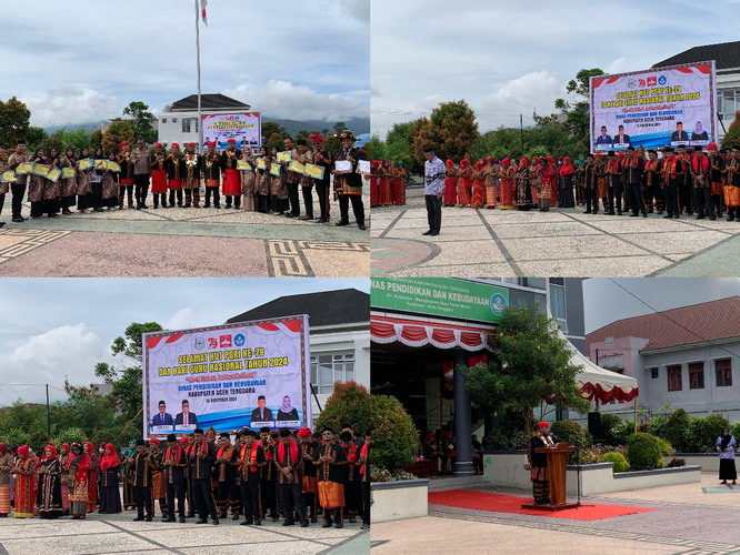 Kutacane, teropong Barat Com. Pemerintah Kabupaten Aceh Tenggara memperingati Upacara Hari Guru Nasional dan Hari Ulang Tahun (HUT) Persatuan Guru Republik Indonesia (PGRI) Ke 79 tahun 2024 di Lapangan Kantor Dinas Pendidikan dan Kebudayaan, Senin (25/11).2024
