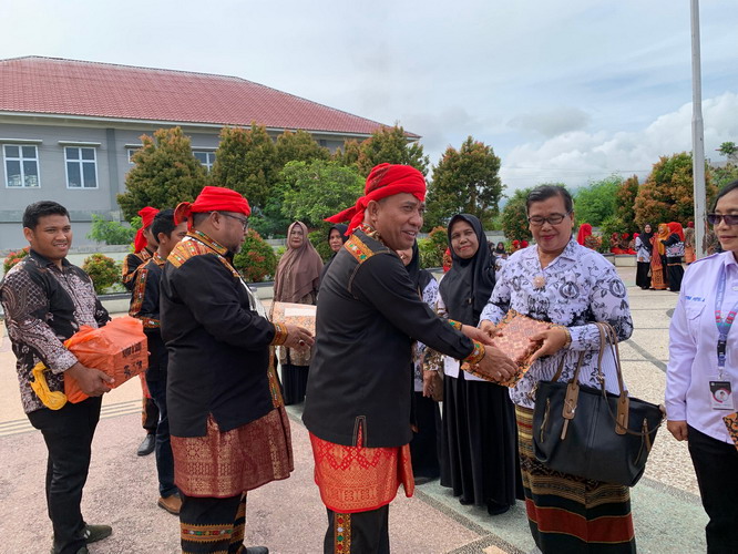 Pada akhir acara ada penyerahan sertifikat dan bingkisan kepada guru, kepala sekolah dan guru purna bakti.