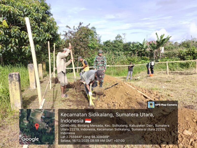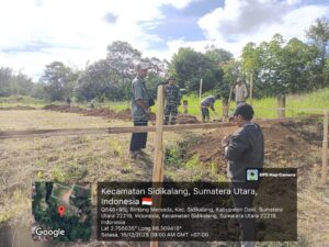 Dairi, – TeropongBarat.com// Pembangunan gedung Koperasi Desa/Kelurahan Merah Putih (KDKMP) di Desa Bintang Mersada, Kecamatan Sidikalang, Kabupaten Dairi, terus berjalan dan memasuki hari ke-5 pengerjaan. Pada Selasa, 16 Desember 2025, personel Koramil 02/Sidikalang, Kodim 0206/Dairi, Peltu Candra Ginting, kembali melakukan pemantauan dan monitoring langsung di lokasi guna memastikan setiap tahapan pekerjaan berjalan sesuai rencana dan spesifikasi.