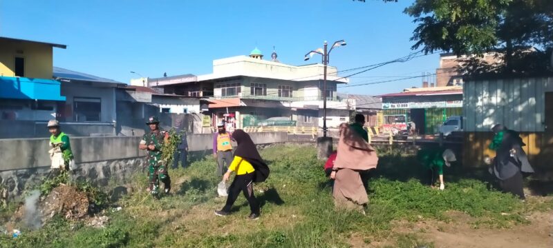 Terlihat para Babinsa bersama warga melakukan gotong-royong pembersihan sampah dan membabat rumput liar, sebagai upaya menciptakan lingkungan yang sehat. Dimana sampah dapat menimbulkan bibit penyakit, terlebih pada musim hujan bisa menimbulkan sarang nyamuk dan mengakibatkan penyakit Demam Berdarah.
