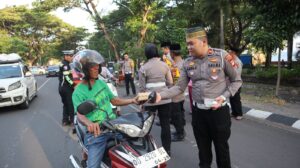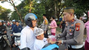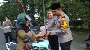 BANTAENG, Teropong Barat.com, – Dalam suasana bulan suci Ramadhan yang penuh berkah, Polres Bantaeng Polda Sulsel kembali menunjukkan kepeduliannya kepada masyarakat dengan menggelar kegiatan berbagi takjil kepada para pengguna jalan. Aksi bagi-bagi takjil dipimpin langsung oleh Kapolres Bantaeng AKBP Nur Prasetyantoro Wira Utomo, S.I.K., M.H., didampingi Ketua Bhayangkari Cabang Bantaeng Ny. Nanda Prasetyantoro. Kegiatan ini dilaksanakan di poros jalan Lamalaka Kec Bantaeng Kab Bantaeng, Jum’at (13/3/2026).