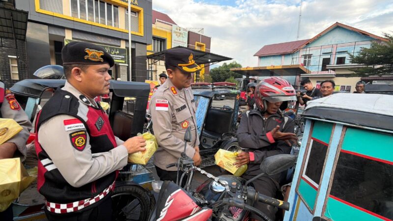 Aceh Tenggara – Dalam rangka memperingati Hari Lahir Korps Sabhara ke-74, Kapolres Aceh Tenggara AKBP Yulhendri, S.I.K. bersama para Pejabat Utama (PJU) Polres Aceh Tenggara melaksanakan kegiatan berbagi takjil kepada para tukang becak di depan Mapolres Aceh Tenggara, Rabu (11/03/2026).
