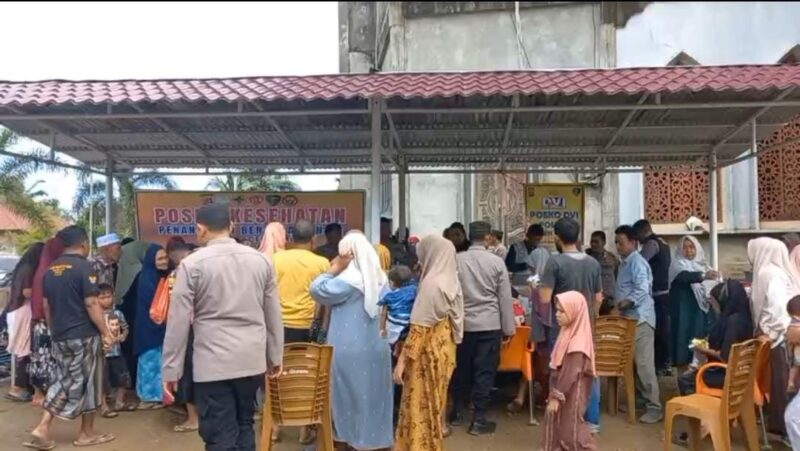 ACEH TIMUR – Kapolres Aceh Timur, AKBP Irwan Kurniadi, S.I.K., meninjau langsung pelaksanaan kegiatan bakti kesehatan berupa pengobatan gratis dan layanan trauma healing bagi warga terdampak banjir di Posko Pengungsian Meunasah Dusun Keude, Gampong Blang Gleum, Kecamatan Julok, Kabupaten Aceh Timur, Jumat (19/12/2025).