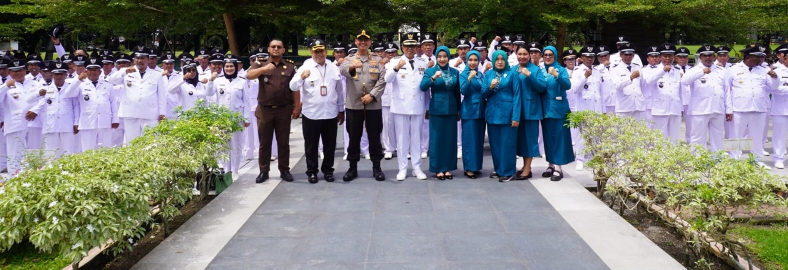 Langkat Teropong Barat| Kapolres Langkat AKBP David Triyo Prasojo SH, SIK, Msi, menghadiri Pengukuhan Penambahan Masa Jabatan Kepala Desa Se-kabupaten Langkat yang digelar bertempat di halaman kantor Bupati Langkat, Senin (04/11/2024).