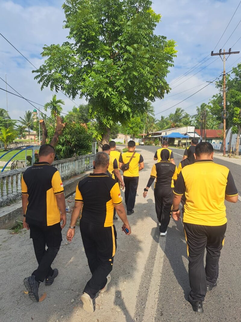 Kegiatan diawali dengan jalan sehat pagi yang dilaksanakan di sekitar wilayah hukum Polsek Labuhan Ruku.