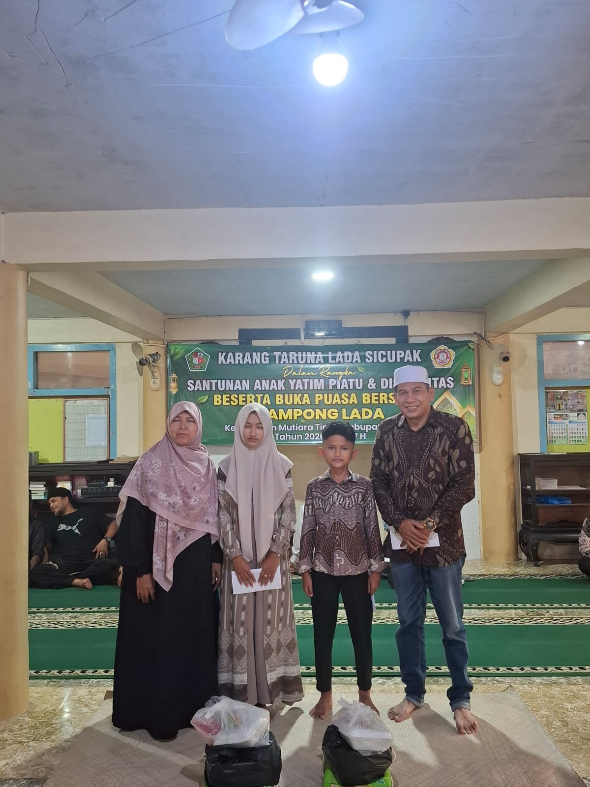 Menurut Deky Fitriady kegiatan ini merupakan agenda rutin tahunan Karang Taruna Lada Sicupak menyantuni yatim-piatu dan penyandang disabilitas dalam lingkungan masyarakat Gampong Lada,” ujar Deky selaku ketua panitia pelaksana santunan didampingi bendahra Fauzi Hasyim.
