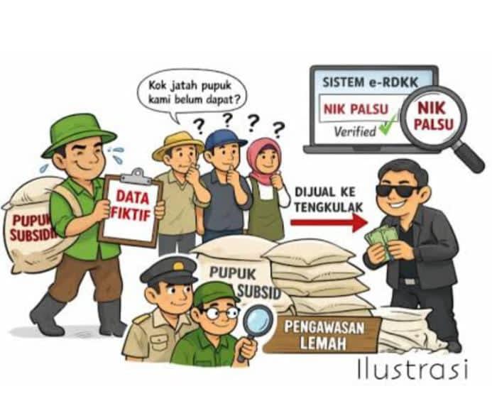 Berdasarkan penelusuran dari dokumen pemerintah dan keterangan lapangan yang dihimpun pada 23 Maret 2026, terdapat indikasi praktik manipulasi data hingga distribusi pupuk yang tidak tepat sasaran. Dugaan ini disebut melibatkan rantai panjang, mulai dari perencanaan hingga penyaluran di tingkat kios.